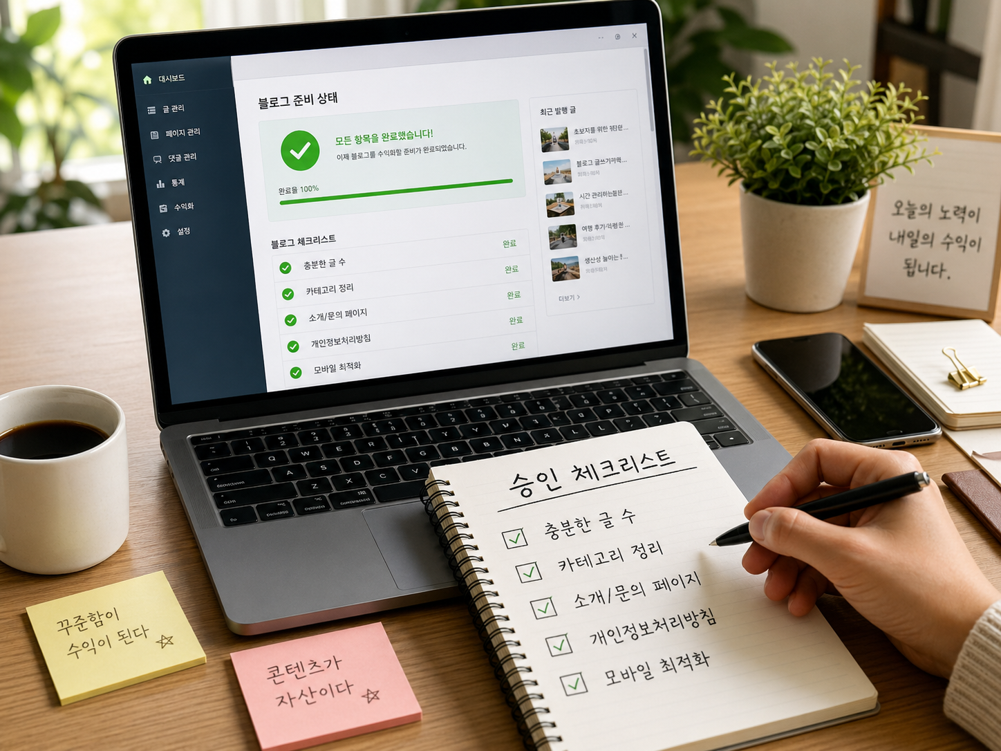 지금부터 애드센스 승인을 위한 여정을 함께 시작해 볼까요? 이 체크리스트를 따라 차근차근 준비하시면 승인 확률을 크게 높일 수 있을 겁니다. 성공적인 블로그 운영을 위한 첫 단추를 함께 채워봅시다.